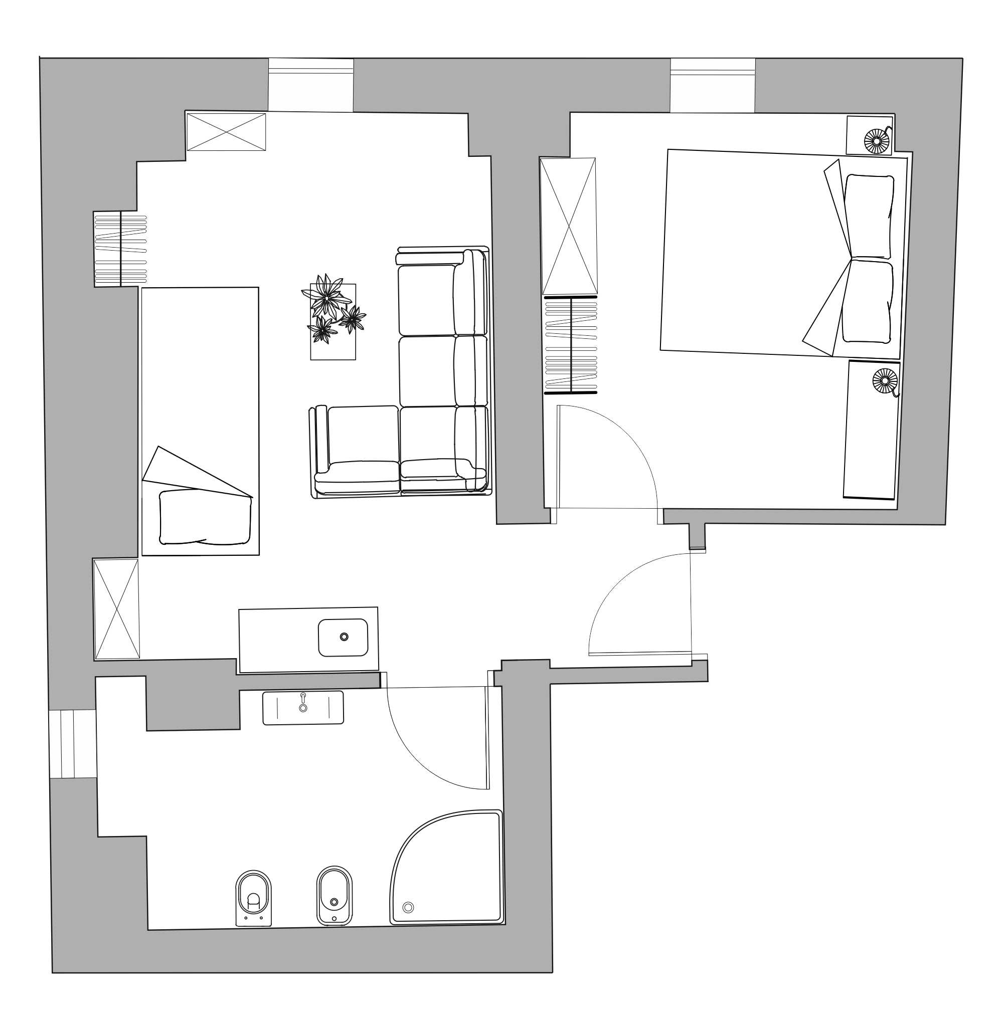 Gdynia to dwa pokoje z łazienką - osobna sypialnia małżeńska i salon. Może tu nocować do 5 osób.