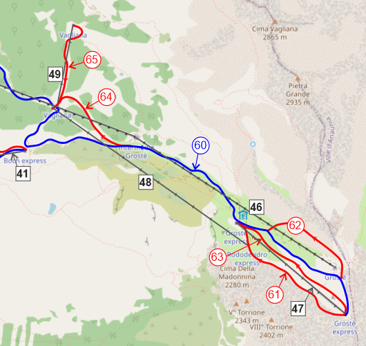 60 Graffer 61 Corna Rossa 62 Ursus Snowpark 63 Cima Grosté 64 Lame 65 Vagliana |