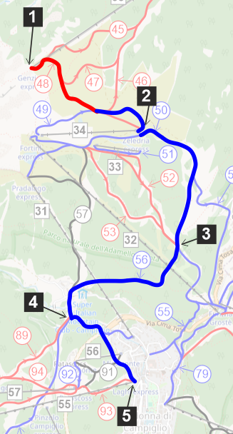 Dalej jedziemy 85 Cinque Laghi do końca, do dolnej stacji wyciągu 55 Cinque Laghi 5.
