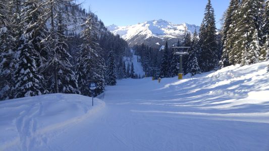 Od naszego domu do dolnej stacji wyciągu Daolasa jest 6 km - można dojechać bezpłatnym skibusem (przystanek jest 100 m od domu) lub samochodem - przy stacji jest duży parking w cenie 5€ za cały dzień.